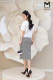 Sét bộ áo croptop và chân váy bút chì kẻ