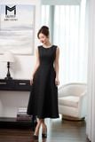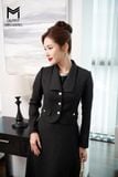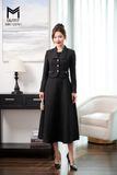 Sét bộ áo khoác cổ én và đầm sát nách đính kim sa cổ