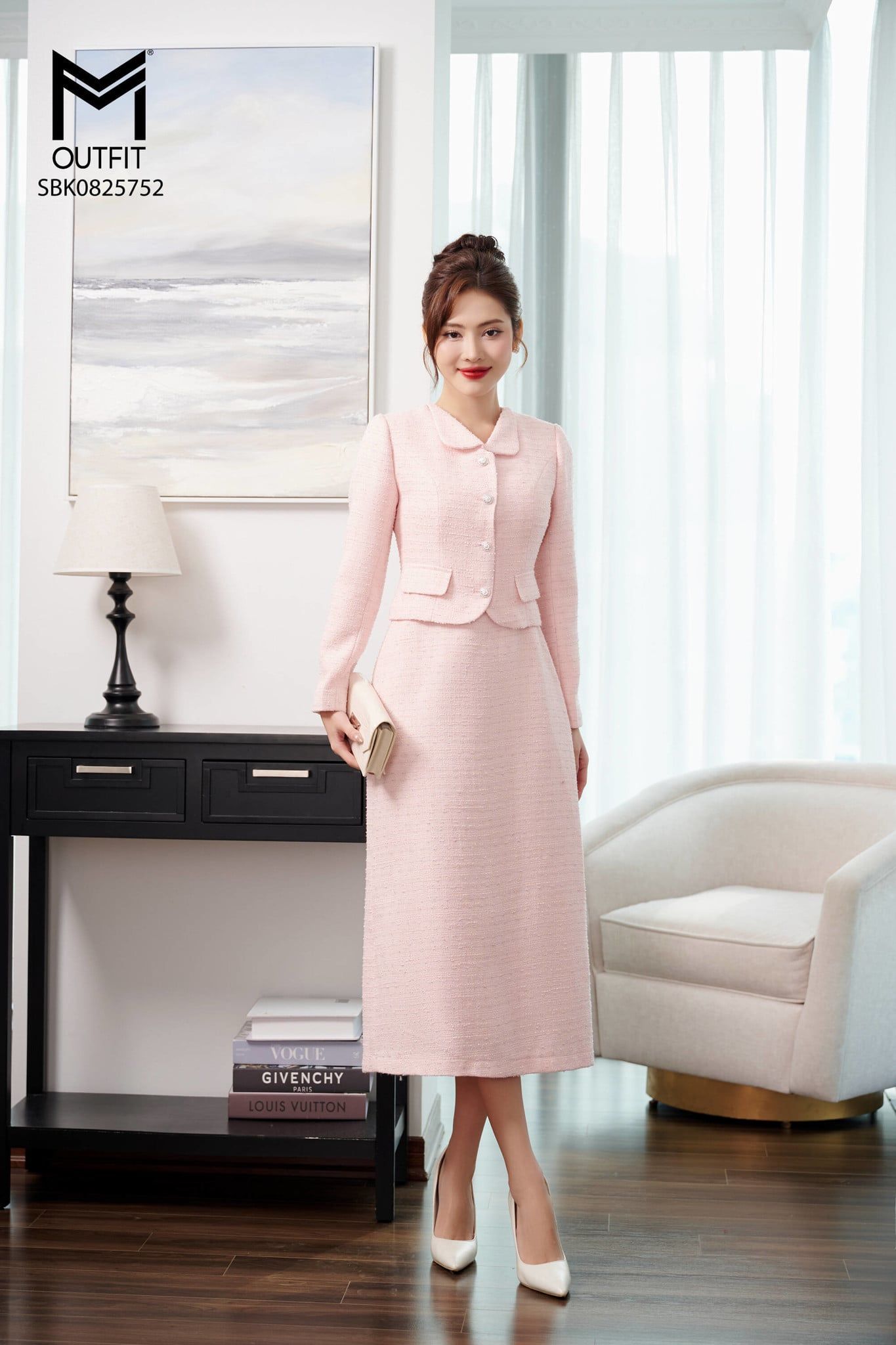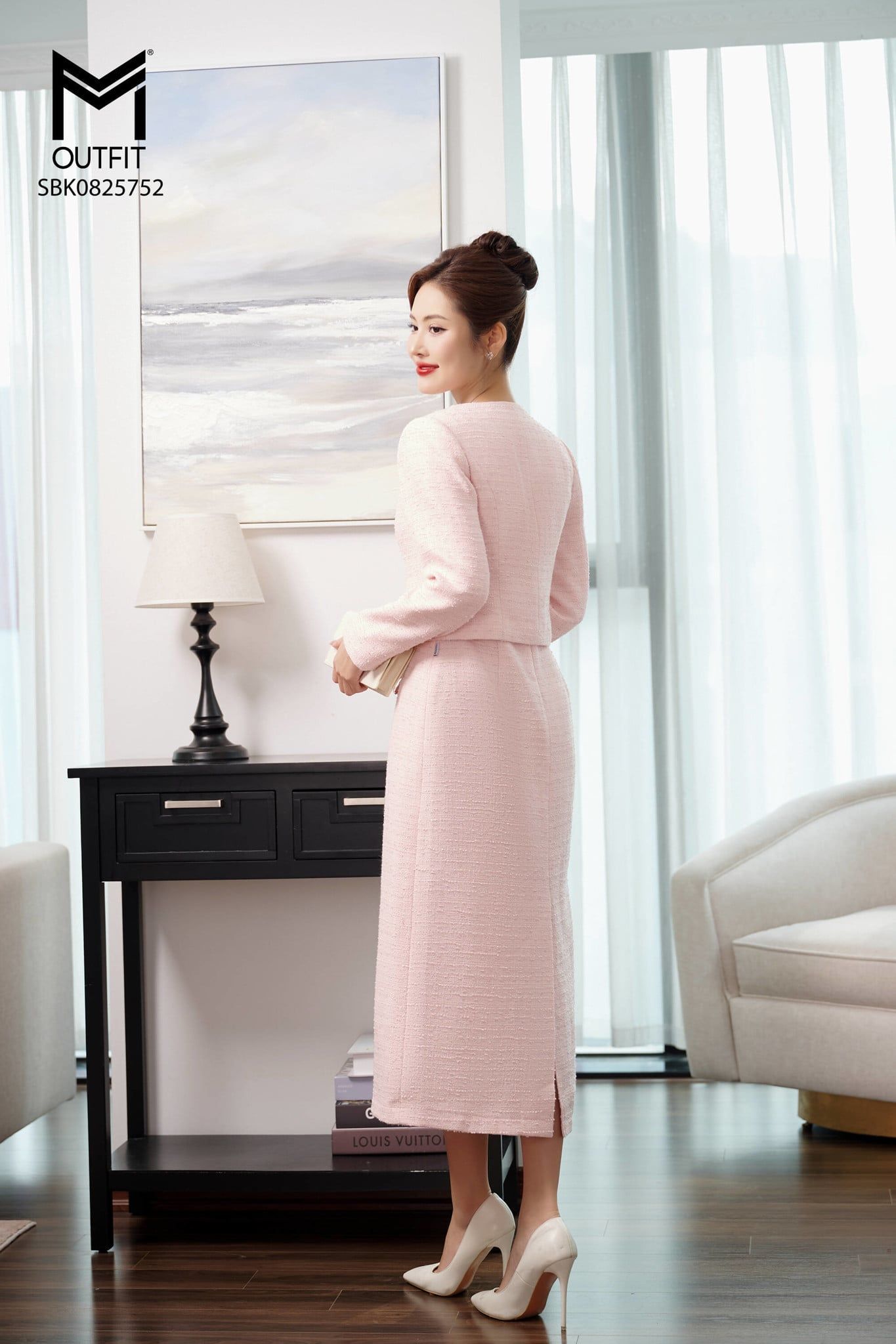 | Đặc điểm | Set bộ áo khoác cổ sam và đầm xòe sát nách |
