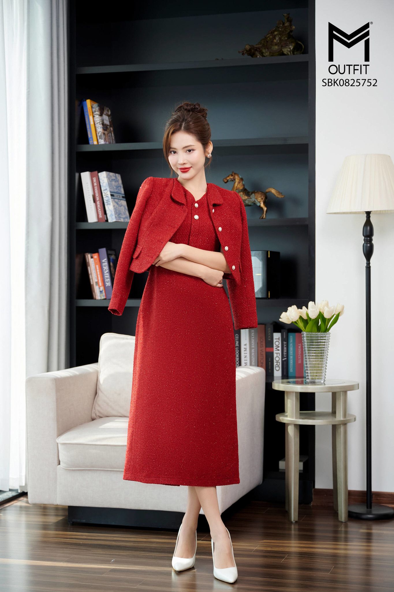 | Đặc điểm | Set bộ áo khoác cổ sam và đầm xòe sát nách |