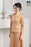Sét bộ áo khoác cổ tròn có túi kết hợp chân váy xòe