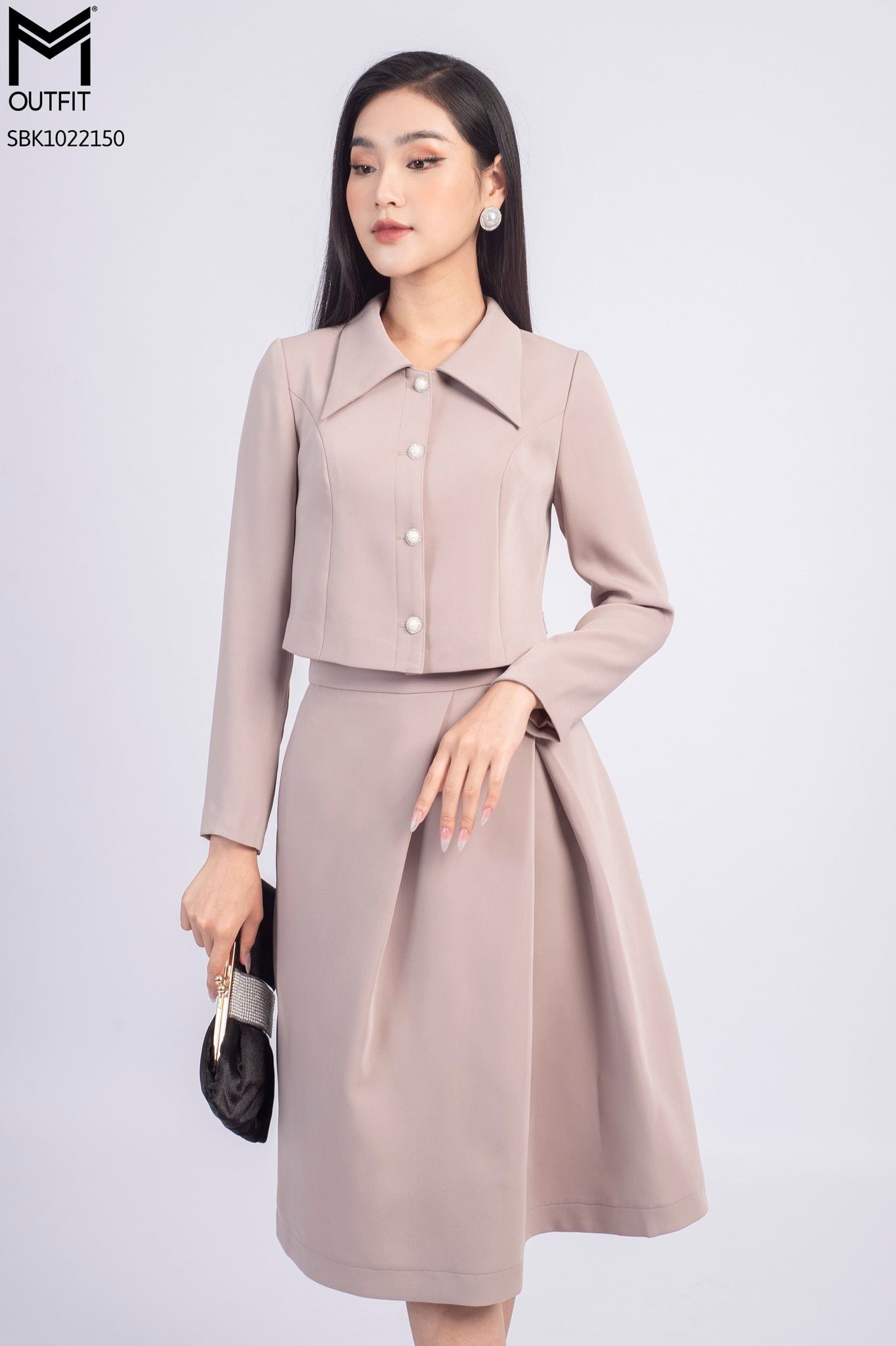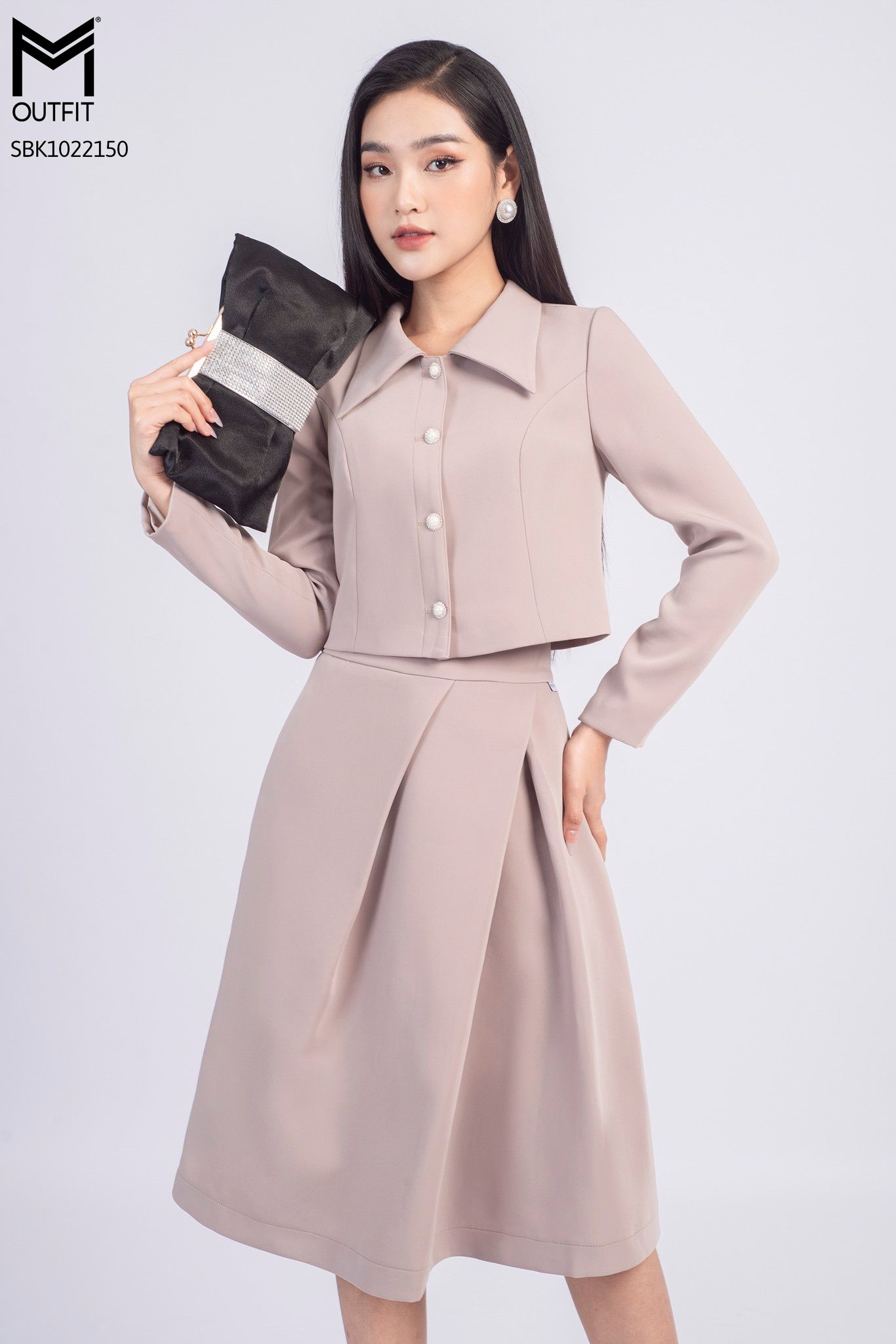 | Đặc điểm | Set bộ áo khoác dáng ngắn, chân váy xếp ly chéo |