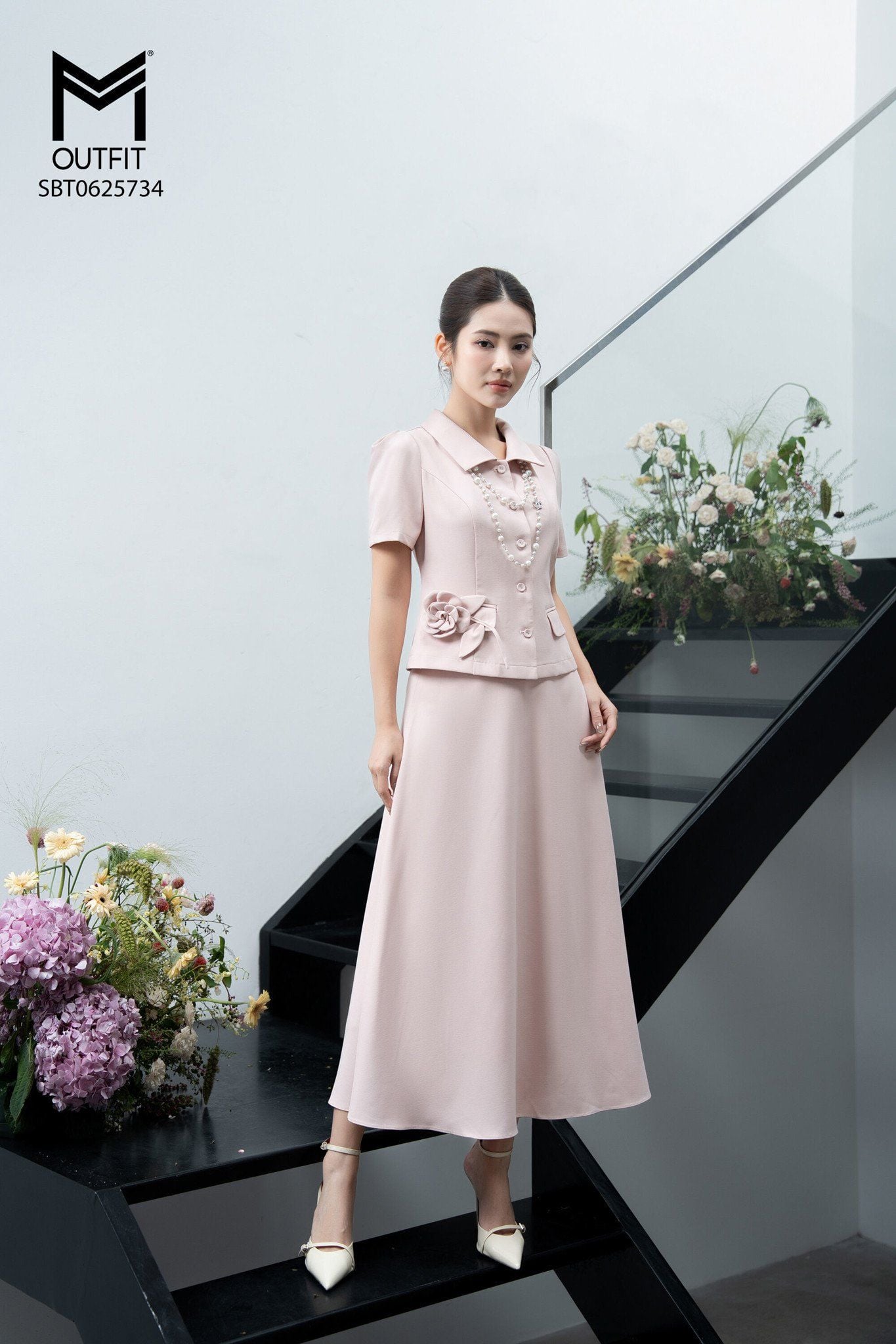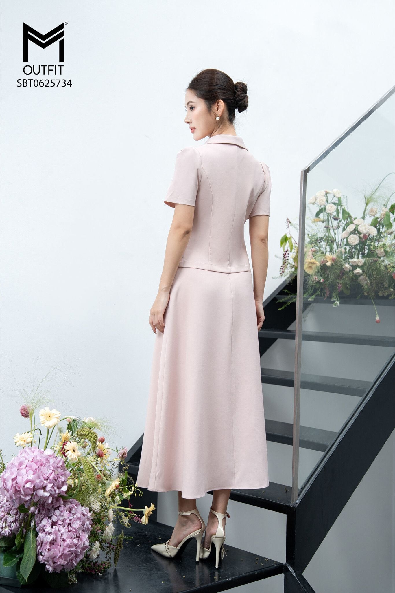 | Đặc điểm | Sét bộ áo kí giả cổ sen nhọn và chân váy xòe |