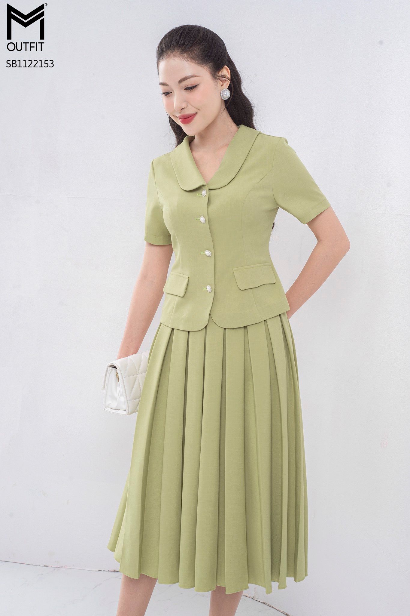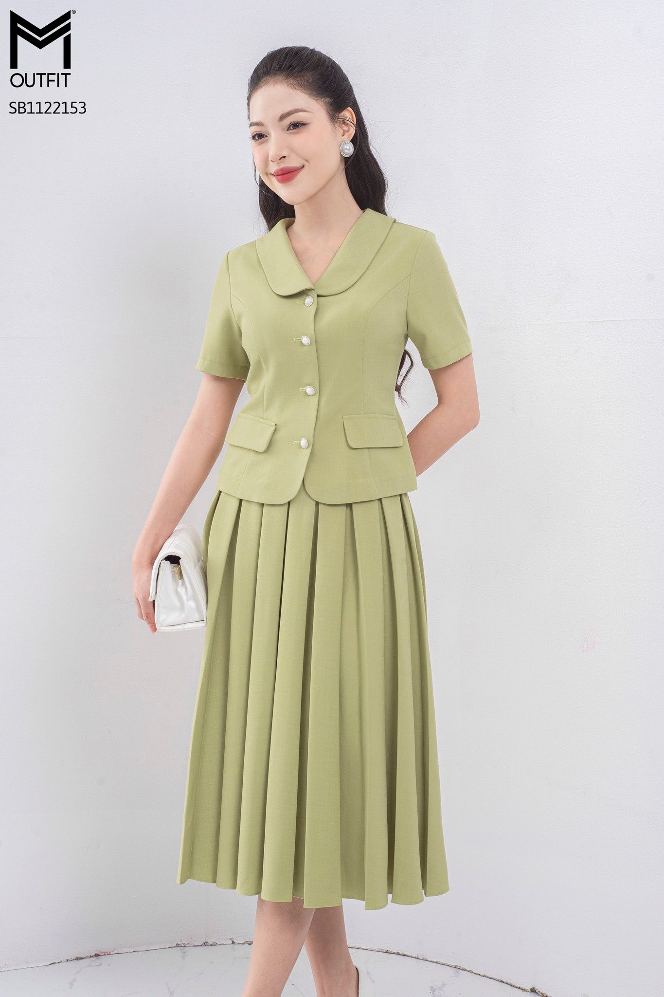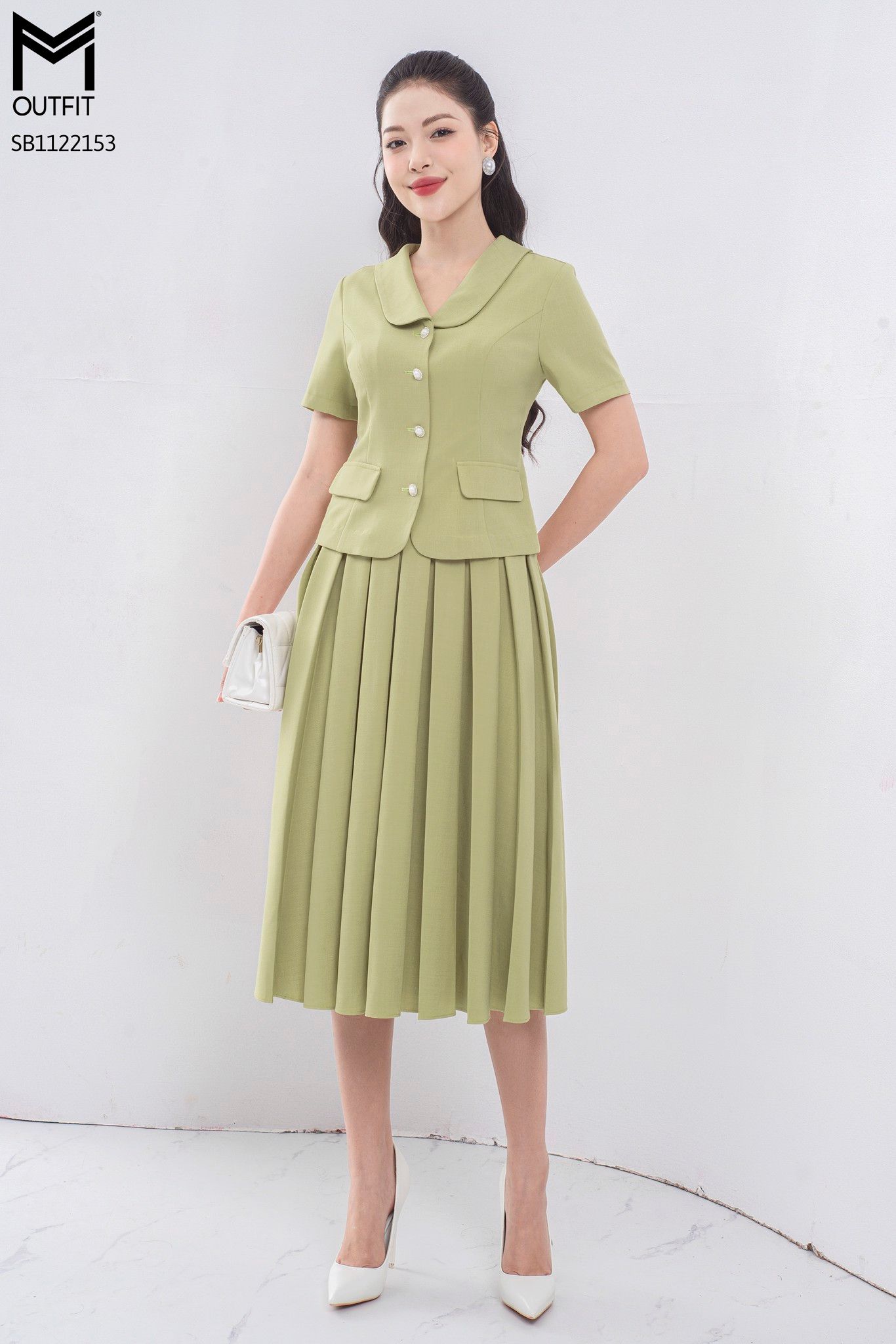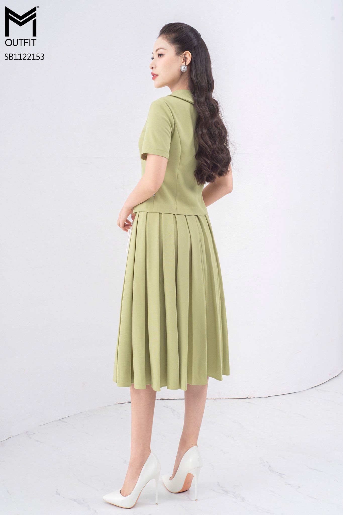 | Đặc điểm | Set bộ áo ký giả + chân váy dập ly hộp |
