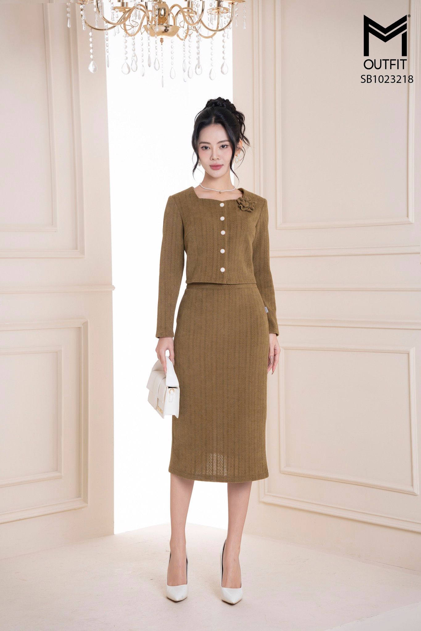 | Đặc điểm | Set bộ áo len đính hoa TT + chân váy bút chì thẳng |