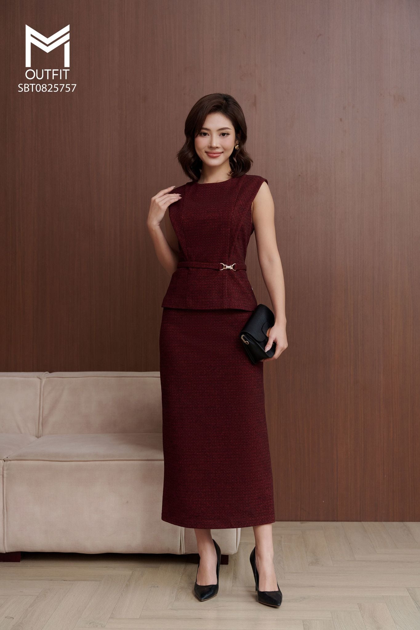 | Đặc điểm | Set bộ áo sát nách đính đai trang trí mix chân váy bút chì thẳng |
