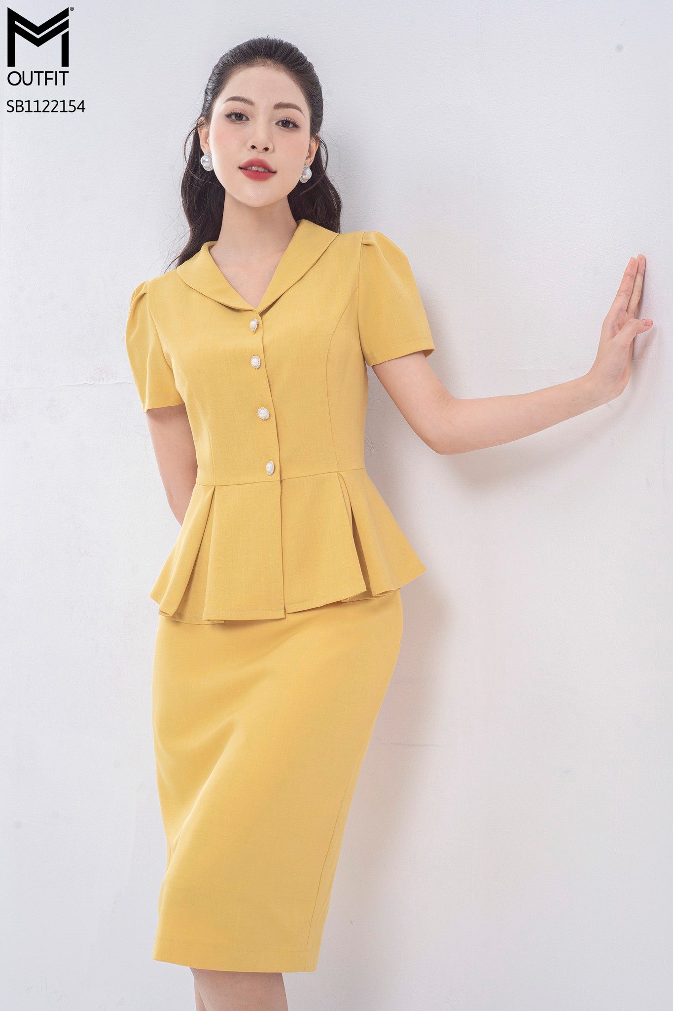 | Đặc điểm | Set bộ áo sơ mi + chân váy dáng bút chì thẳng |