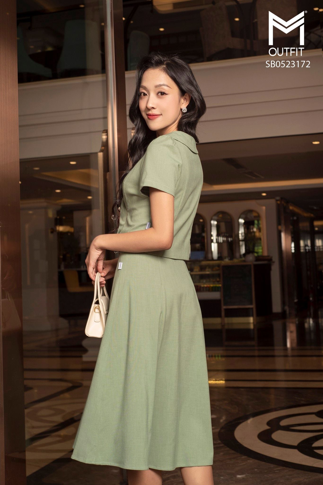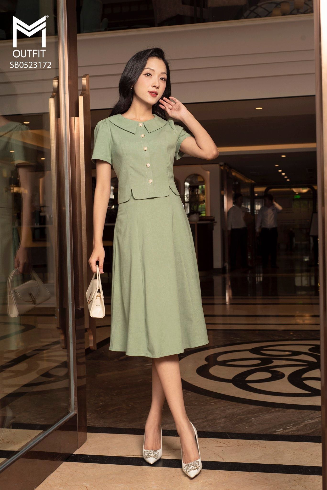 | Đặc điểm | Set bộ áo sơ mi + chân váy dáng xòe |