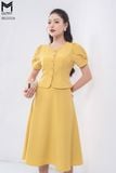 Set bộ áo sơ mi cổ tròn + chân váy dáng xòe