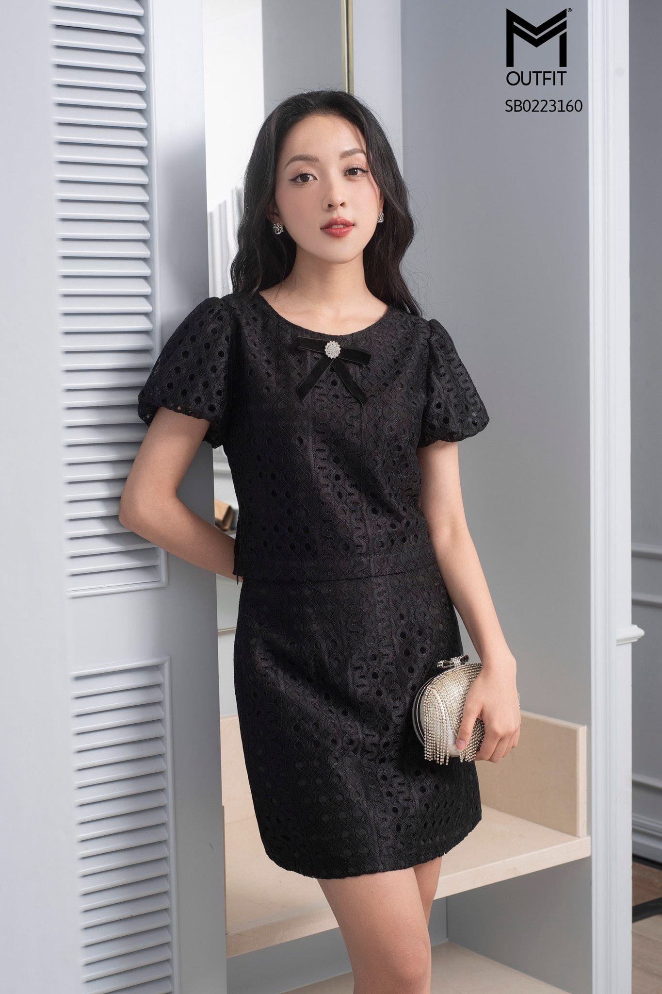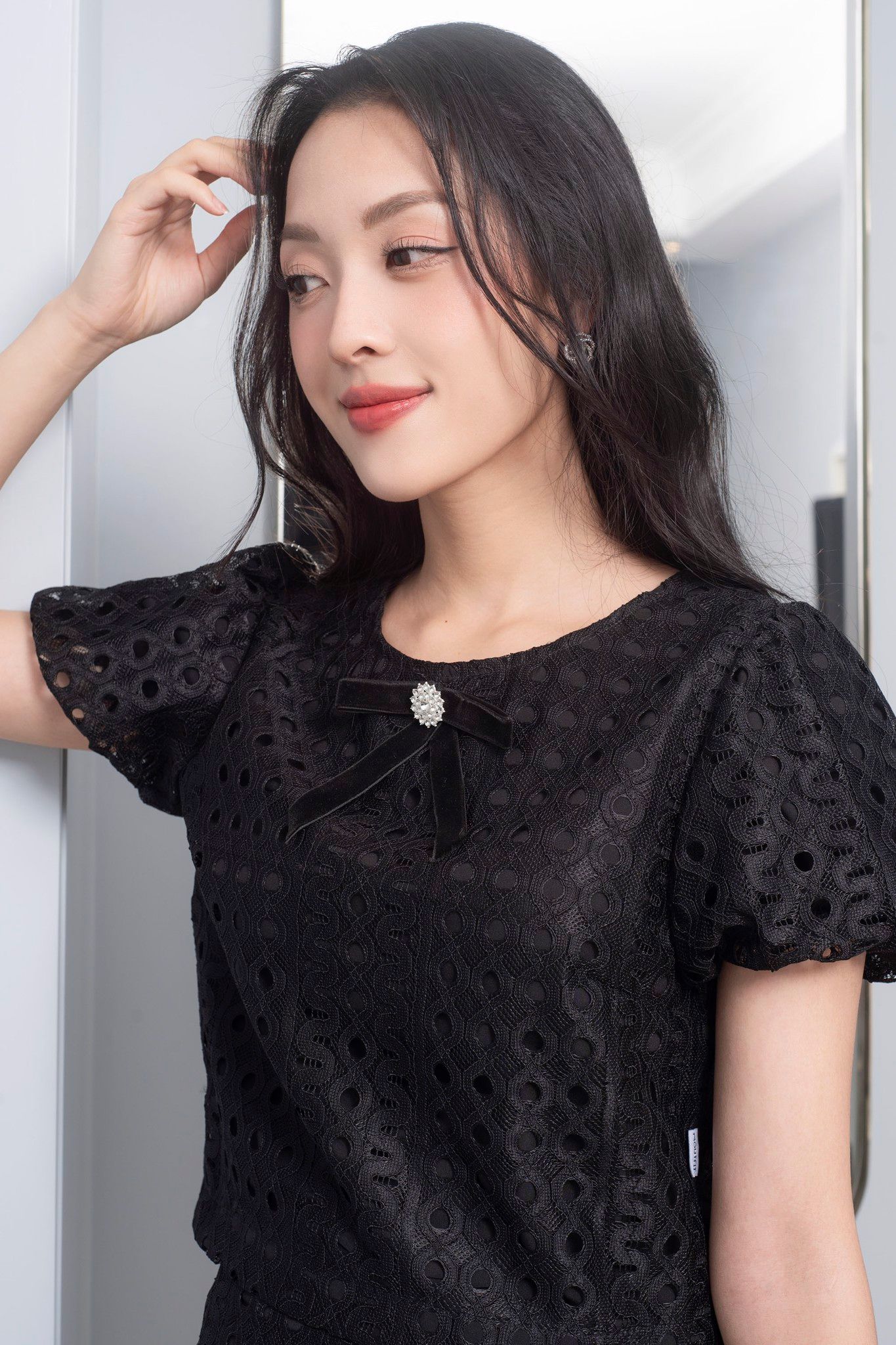 | Đặc điểm | Set bộ áo sơ mi ren + chân váy dáng A |