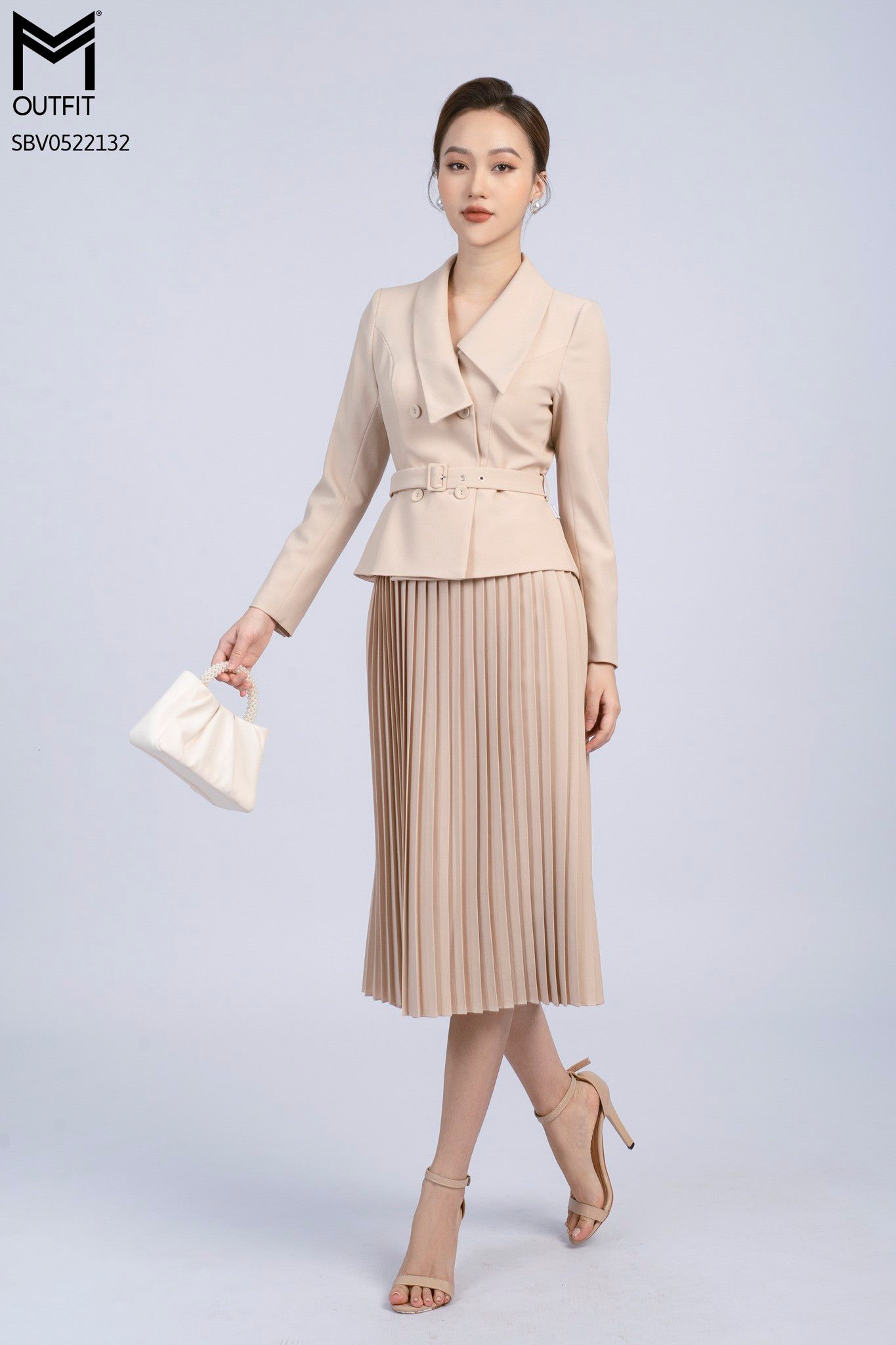 | Đặc điểm | Sét bộ Áo vest+ chân váy xòe dập ly |