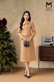 Sét bộ áo vest cổ phối vải lụa cúc bọc kết hợp chân juyp dáng A
