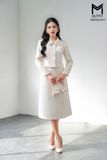 Sét bộ áo vest cổ phối vải lụa cúc bọc kết hợp chân juyp dáng A
