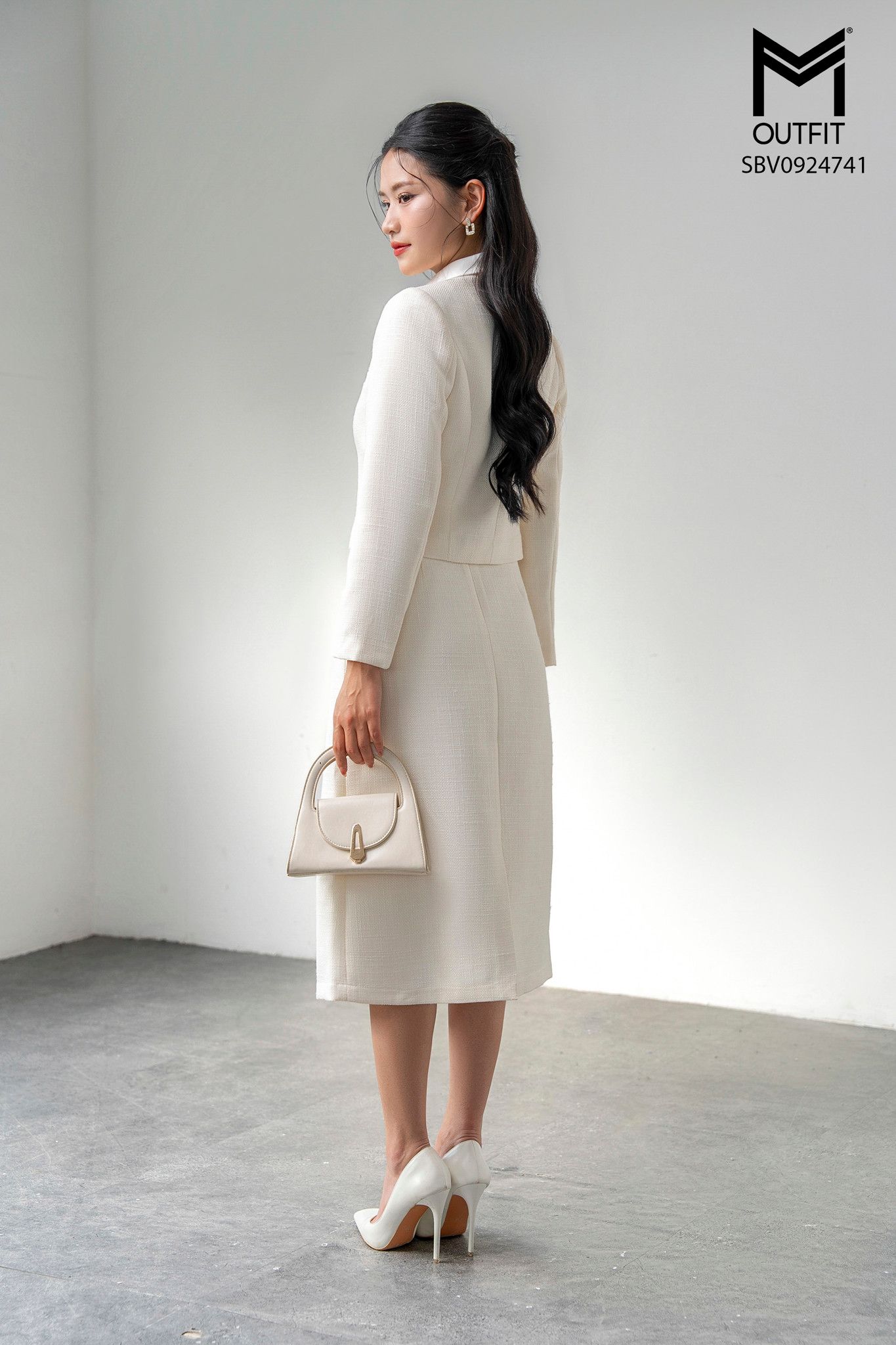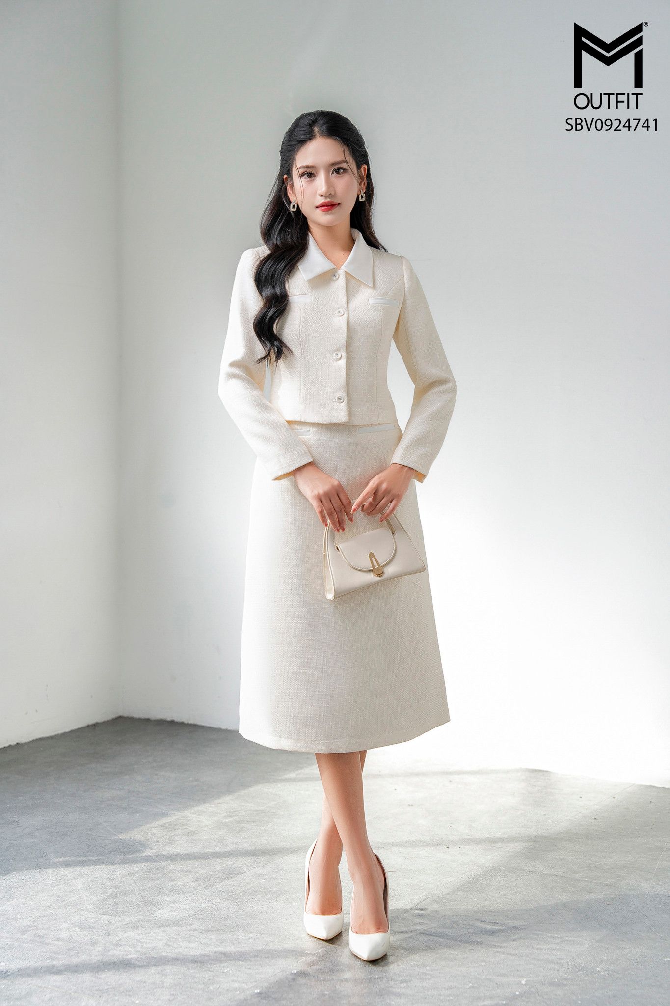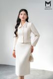 | Đặc điểm | Sét bộ áo vest cổ phối vải lụa cúc bọc kết hợp chân juyp dáng A |