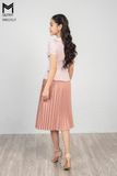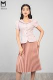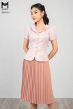 Set bộ chân váy xếp ly, áo kẻ cổ sen đính hoa