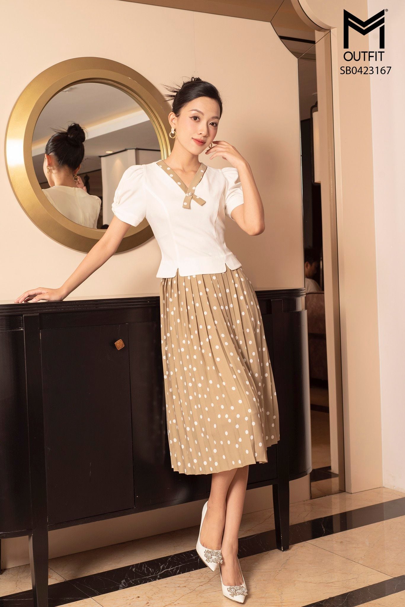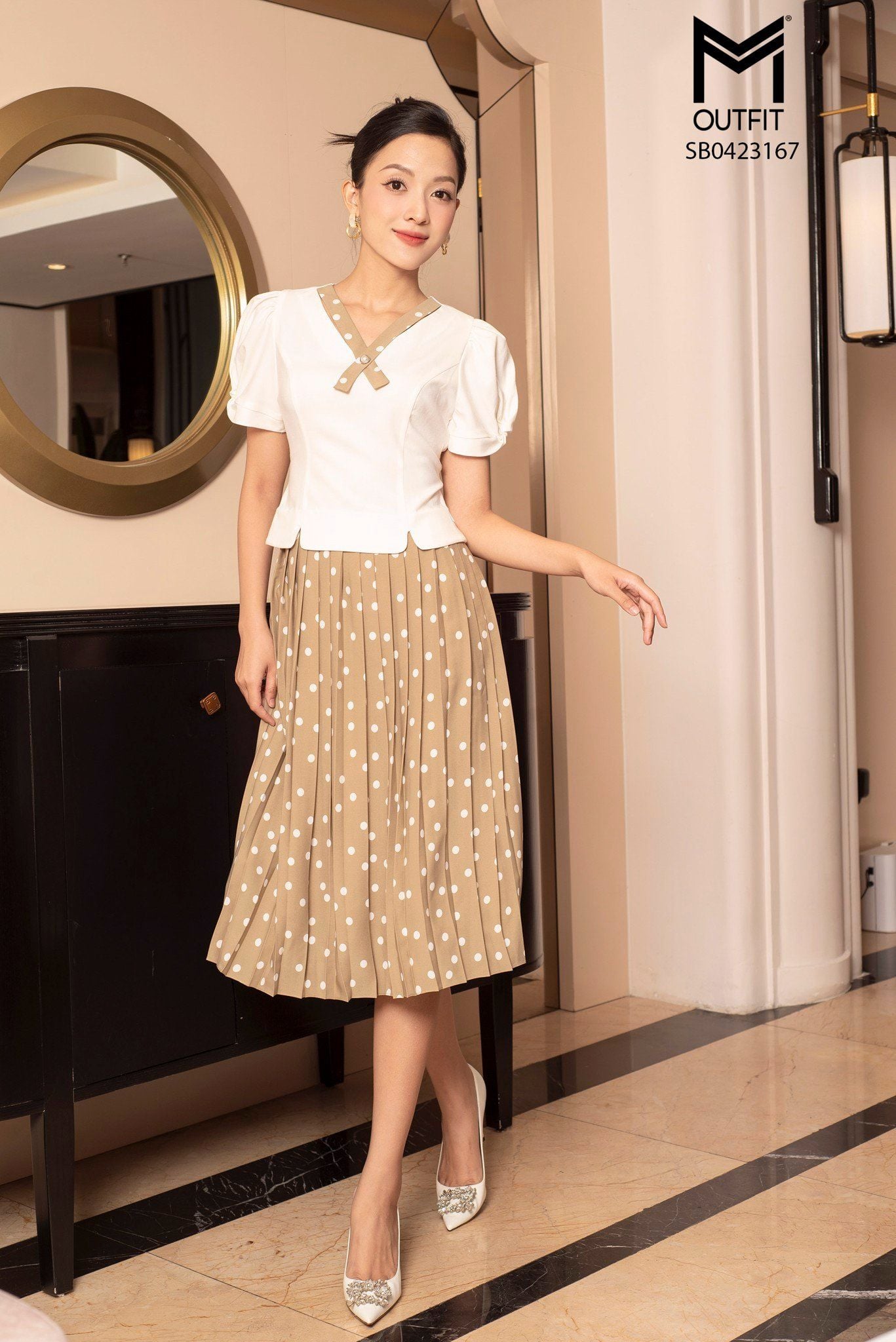 | Đặc điểm | SÉT BỘ CHÂN VÁY XẾP LY, ÁO NƠ CỔ |