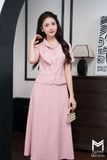 Sét bộ cổ sen luồn tay nhún bồng nhẹ và chân váy xòe dài 85cm