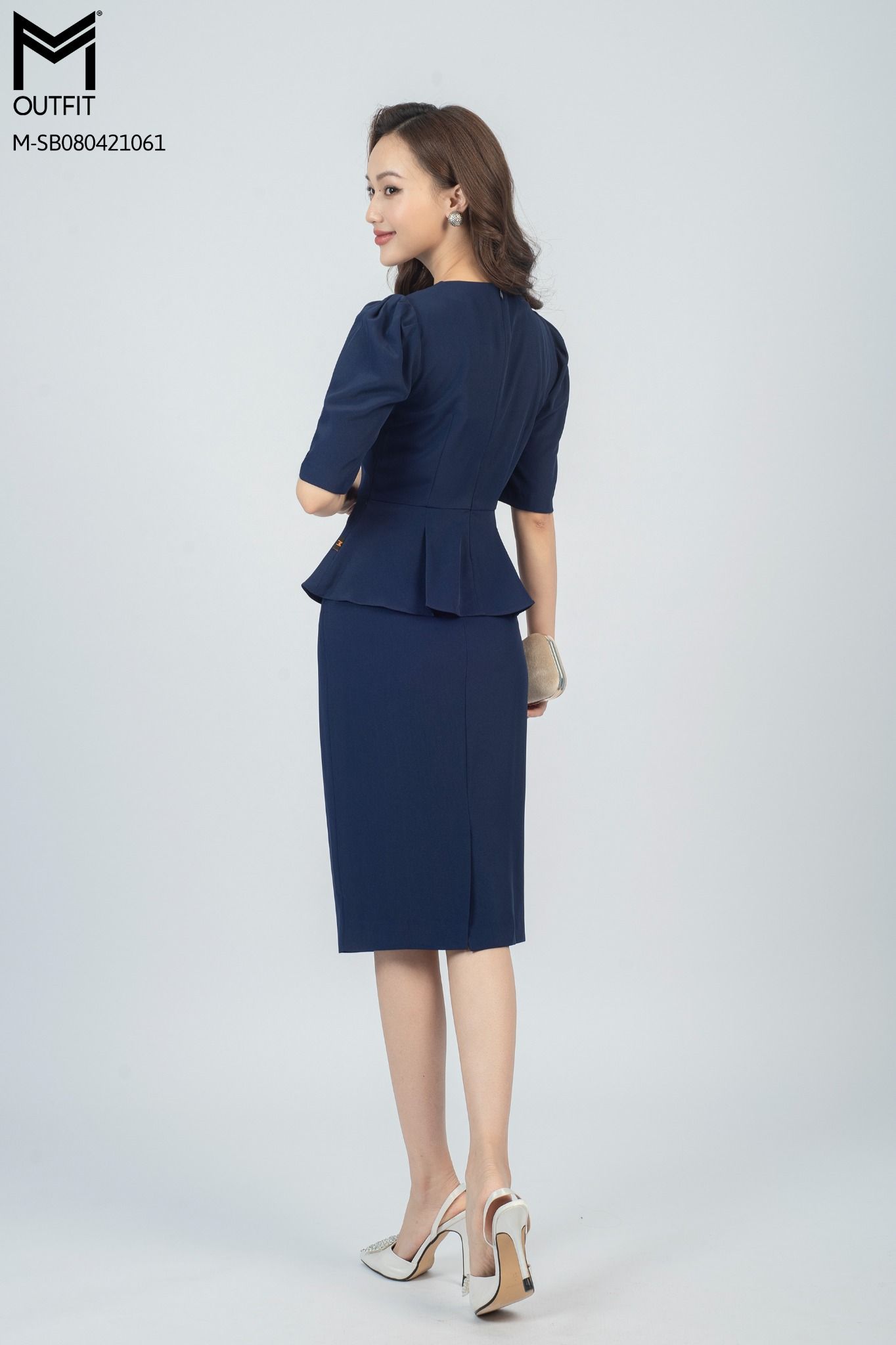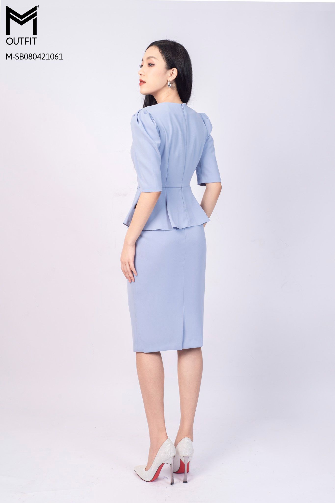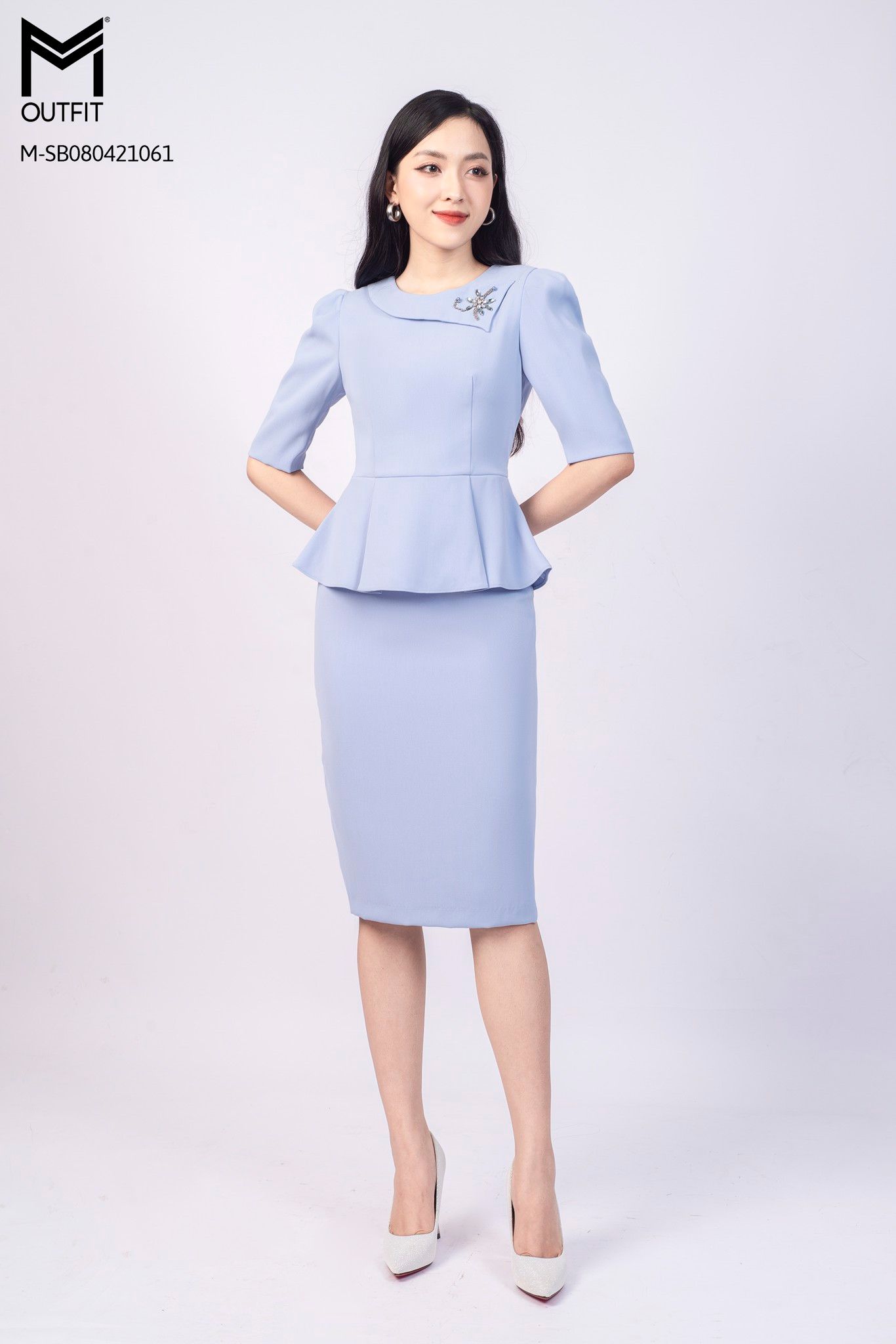 Set bộ cao cấp của MM Outfit. Áo thiết kế dáng peplum che khuyết điểm vòng 2 hiệu quả, tay bồng, cổ tròn đính hạt trang trí cùng với chân váy bút chì tạo nên một bộ đồ tôn dáng tuyệt đối, thu hút ánh nhìn bởi vẻ đẹp thanh lịch, chỉn chu, chuyên nghiệp
