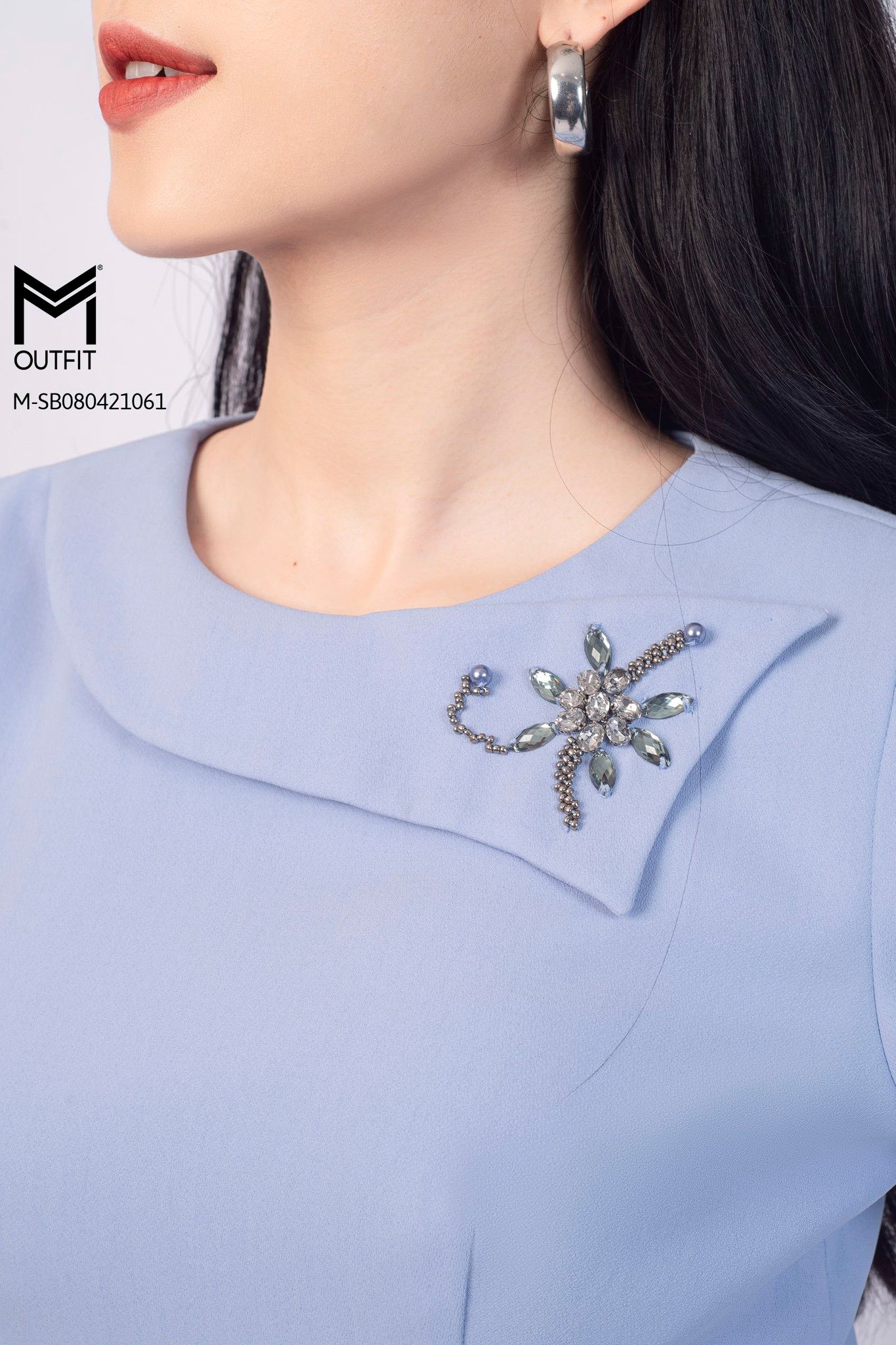 | Đặc điểm | Set bộ áo thiết kế tay ngắn bồng, cổ tròn đính hạt trang trí Chân váy bút chì |