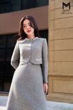 Sét bộ dạ tweed áo vest cổ tròn đính kim sa kết hợp đầm A xòe