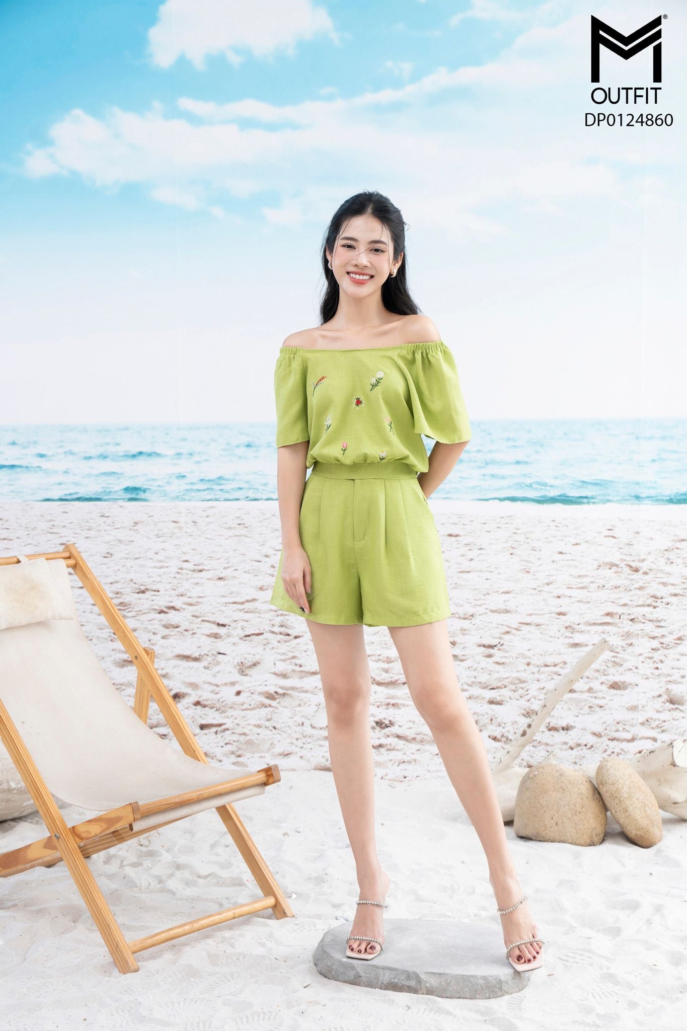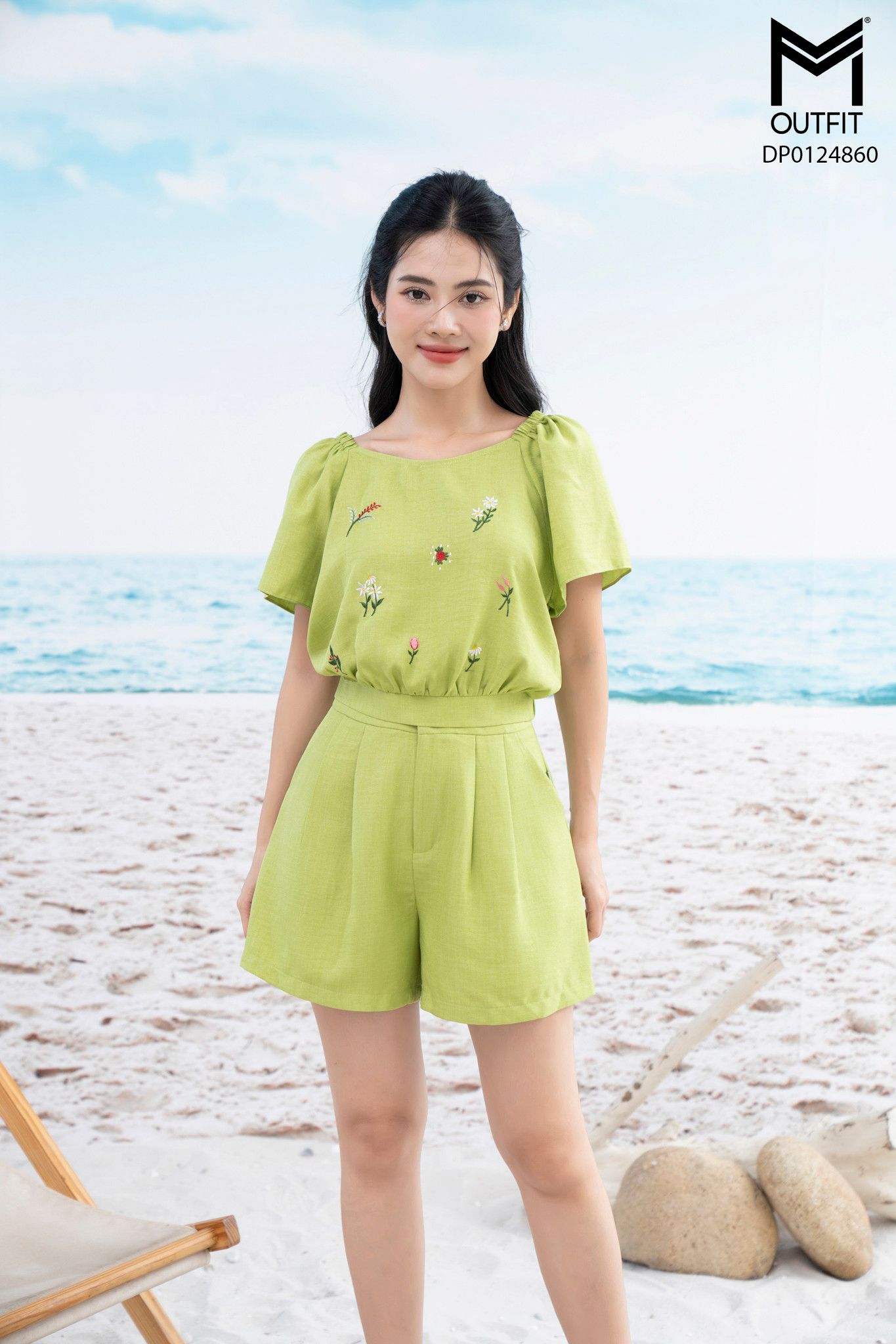 | Đặc điểm | Sét bộ đùi áo cổ tim thêu hoa |