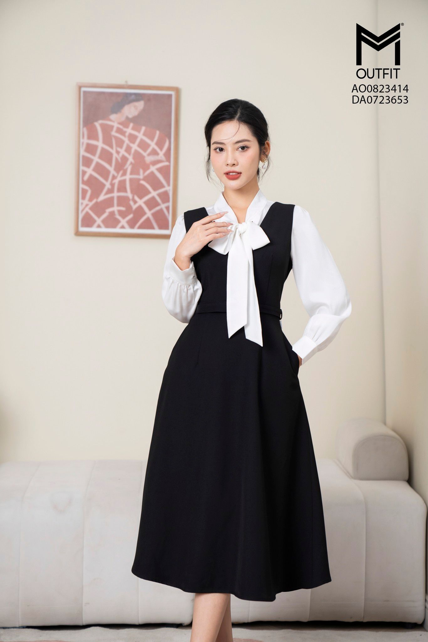 | Đặc điểm | Sơ mi dài tay, nơ cổ trang trí nữ tính |